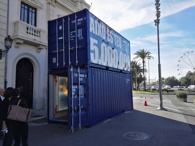 Contenedor de la muestra conmemorativa de los 5 millones de contenedores en el Puerto de Valencia / Cadena SER