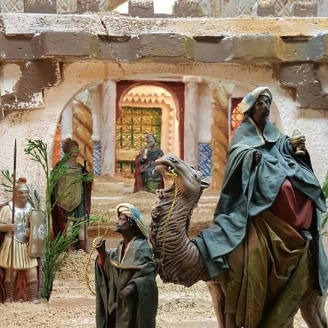 Es un belén solidario, los fondos se destinarán a Cáritas Interparroquial de Elda. Se sortea un belén entre los que quieran participar.