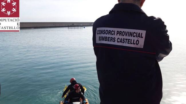 Los bomberos rescatan el cuerpo de un hombre en el puerto de Burriana / Consorcio Provincial de Bomberos