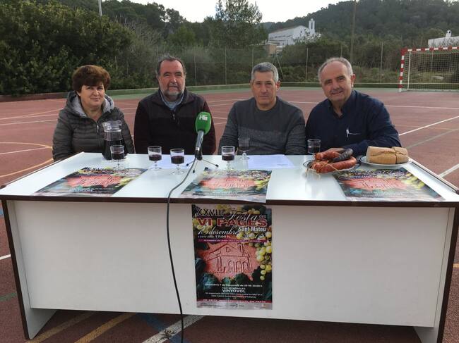 El director insular de Agricultura, Vicent Tur; el concejal de Sant Mateu, Joan Torres; el presidente de la Asociación de Vecinos, Antoni Cardona, y la vocal Maria Bonet han presentado hoy la XXVIII edición de la Festa des Vi Pagès, que se celebrará este sábado, 15 de diciembre, en el polideportivo de Sant Mateu a partir de las 17 horas.