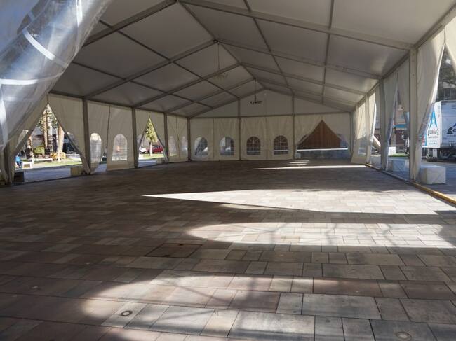La carpa que cubrirá la pista de patinaje sobre hielo en la plaza Castelar / Cadena SER