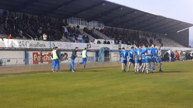 Comunión entre la grada y el equipo tras el 2-1 de De Frutos. / Cadena SER