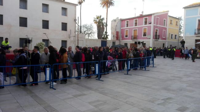Peregrinos haciendo cola en la plaza del monasterio para entrar a ver a la Reliquia / Sonia Martín