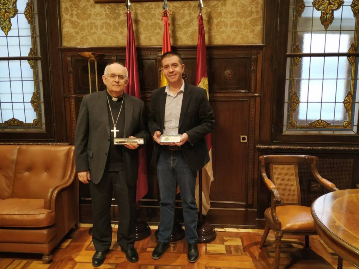 El presidente de la Diputación con el obispo CASTILLA LA MANCHA.-Cabañero y Fernández Collado sellan su deseo de tener buenas relaciones regalándose una navaja y un plato de cerámica 19/12/2018