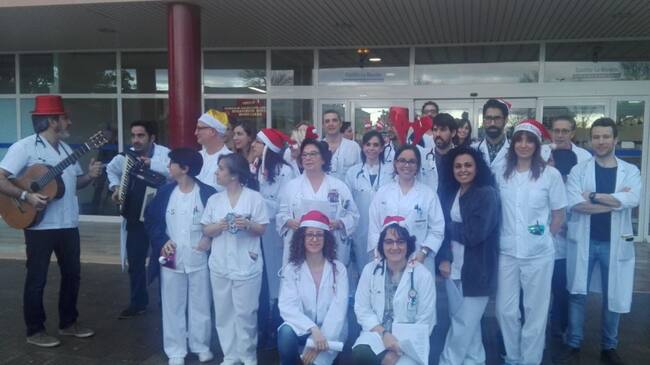 Decenas de trabajadores de este centro hospitalario han cantado un villancico reivindicativo a las puertas de este centro para demandar un mayor número de facultativos