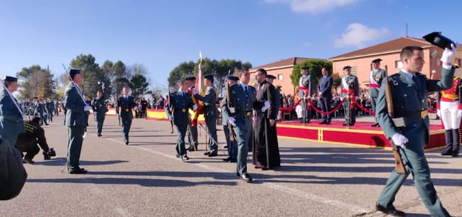 Cita importante esta mañana en la Academia de la Guardia Civil de Baeza. Allí han jurado bandera los integrantes de la 124.ª Promoción de la escala de cabos y guardias. 1046 hombres y 253 mujeres. Junto a ellos, 75 civiles. No ha acudido finalmente a pesar de la convocatoria, el ministro del Interior, Fernando Grande-Marlaska, ni tampoco el director general de la Guardia Civil, Félix Azón.