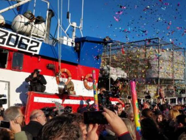 Han sido recibidos como héroes por parte de familiares, amigos y representantes municipales. El barco, un nasero de artes menores de 27 metros de eslora, ha entrado al muelle pesquero poco después de las 10. Una batucada, pancartas y muchos aplausos y gritos han acompañado la maniobra de atraque que ha ejecutado el patrón, Pascual Durá, de manera impecable, a pesar de que le esperaban también multitud de cámaras y periodistas.