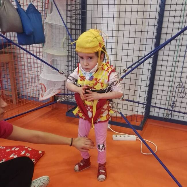 Los niños con esta enfermedad tienen problemas de tiroides, problemas cardíacos, malformaciones, convulsiones, problemas de visión y auditivos, en el desarrollo, tienen un poco de déficit intelectual... Es variable, dependiendo del grado que tengan. Todo esto hay que suplirlo con terapias: logopedia, hidroterapia, fisioterapia, hipoterapia... siempre se intenta probar todo tipo de terapia, hacer lo que le vaya mejor a los niños, lo que les haga avanzar un poquito más".