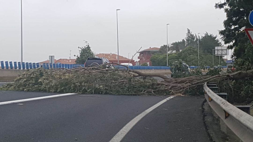 El fuerte viento que sopla en la zona norte de Tenerife ha provocado la caída de un árbol de grandes dimensiones. El mismo se ha desplomado en la Autopista Tf5, sentido Santa Cruz, originando importantes retenciones en la vía y sin heridos, según han comunicado en el 112 y el Servicio de Carreteras del Cabildo insular.