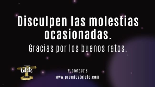 "Desde la organización de los Premios Tolete, lamentamos comunicar que ayer jueves, día 27 de diciembre, realizamos la última publicación relativa a esta iniciativa (esta de hoy es solo un comunicado). De esta forma, damos fin -para alegría de muchos y, queremos pensar, pena de muchos más) a la andadura de este proyecto, que se remonta al año 2014, debido a presiones políticas y de alguna que otra gran empresa recibidas durante los últimos meses, que nos han ido quitando las ganas de seguir.