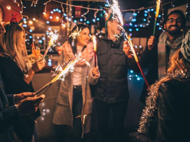 Un grupo de jóvenes celebra la Nochevieja en la calle. / Getty Images
