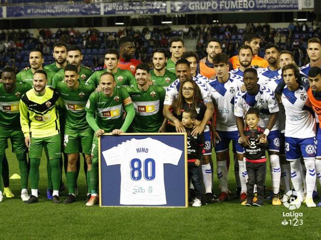 El franjiverde Nino fue homenajeado antes del encuentro por el Tenerife y su afición como reconocimiento a sus 4 campañas en el conjunto canario en las que firmó 80 goles, anotando 29 de ellos en la Liga 2008-2009 en la que logró el ascenso a Primera con el Club tinerfeño, precisamente con José Luis Oltra como técnico, ahora también en el banquillo del Heliodoro.