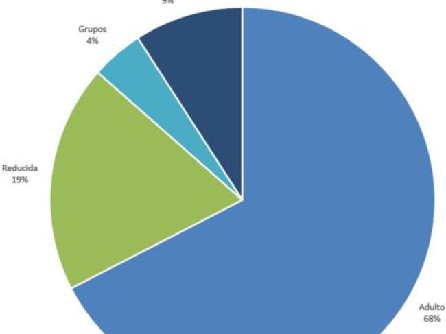 El mayor porcentaje de entradas registradas al Oceanogràfic se corresponde con el público de más de 13 años y adulto (68%), mientras se ha acogido a la tarifa reducida un 19% aplicable de 4 a 12 años, a mayores de 65, pensionistas y/o jubilados, personas con diversidad funcional y desempleados.