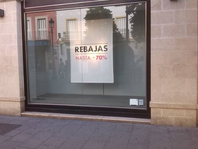 Cartel de rebajas en uno de los comercios del centro Jerez / Radio Jerez CADENA SER