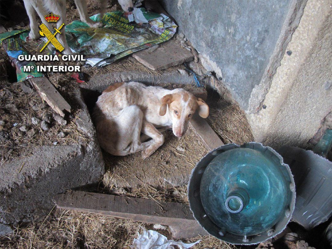 En el transcurso de la inspección que se realizó en un local anexo a la vivienda, el Seprona pudo comprobar que los animales habitaban en un espacio rodeado de sus propios excrementos en el que, además, encontraron el cadáver de un perro en el interior de una tina de plástico.