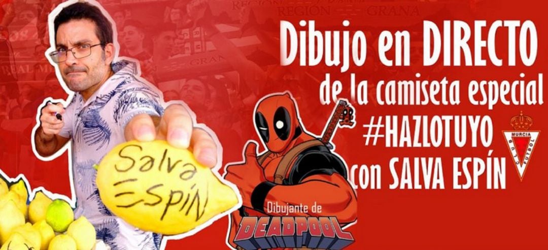 El prestigioso dibujante de cómics murciano Salva Espín se ha unido al movimiento #HazloTuyo con el diseño de una camiseta exclusiva del Real Murcia diseñada e ilustrada por él y que quedará plasmado en un dibujo que realizará mañana y será seguido en directo a través de las redes sociales.