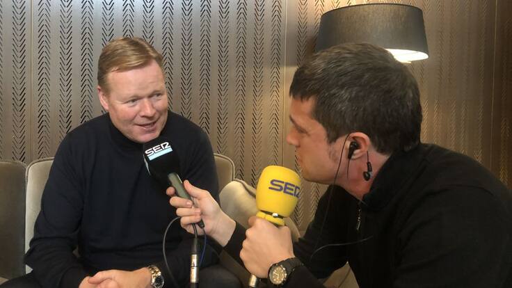 El 'Què t'hi jugues!' ha tingut avui un protagonista de luxe: el seleccionador holandès Ronald Koeman. En una entrevista amb Sique Rodríguez i Adrià Albets, l'ex jugador del FC Barcelona ha elogiat la figura de Johan Cruyff, ha parlat del futur de De Ligt i De Jong, i de si es veu algun dia entrenant al Barça.