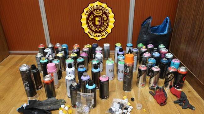 Botes de pintura intervenidos por la Policía Local / @PoliciaVLL