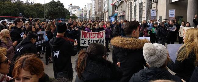 Cerca de 200 personas, según los organizadores, han secundado la concentración celebrada este domingo en A Coruña contra la caza de zorros y el apoyo de la Xunta de Galicia, que subvenciona con "35.000 euros de dinero público" los campeonatos en los que se "masacran estos animales".