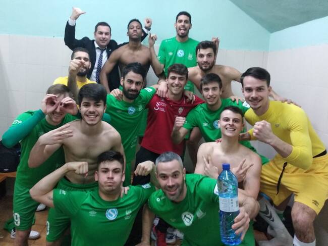 Los jugadores y delegado del Santiago Futsal celebraron el triunfo en Tenerife / SFS