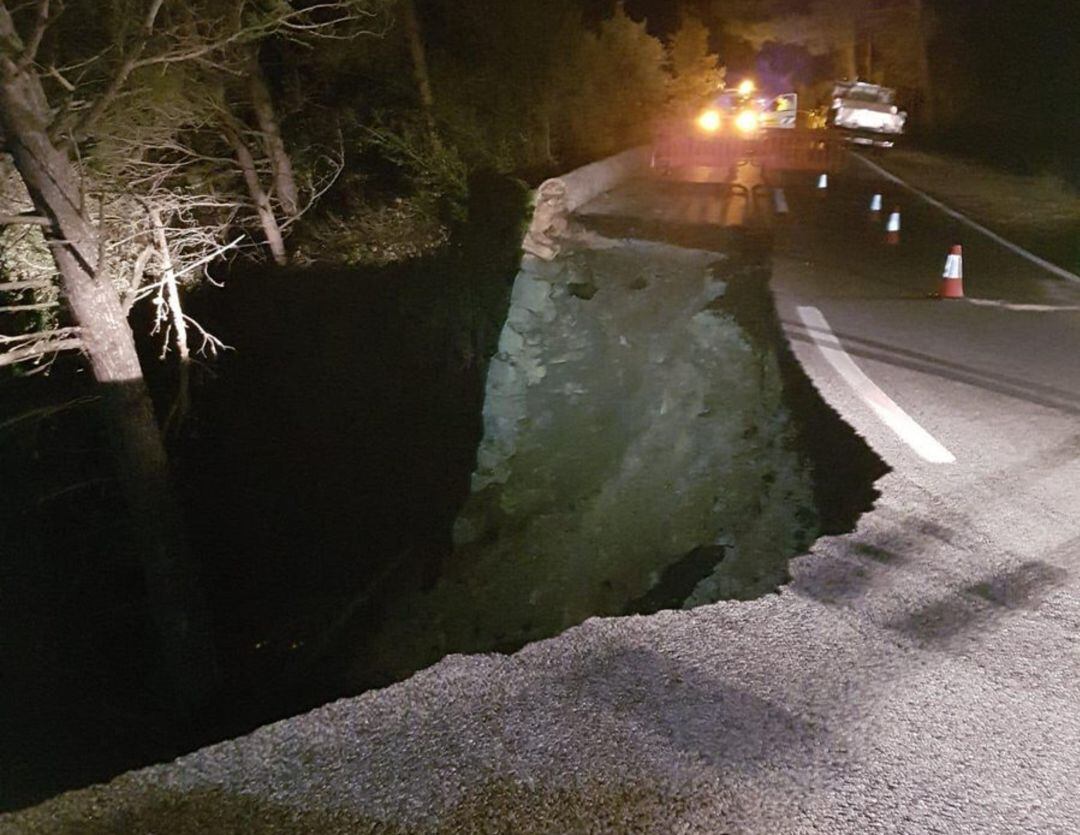 La carretera Ma-2130 ha sido cortada tras sufrir el desprendimiento de "prácticamente un carril" a ala altura del Salt de la Bella Dona, según han informado desde la Dirección General de Tráfico (DGT).