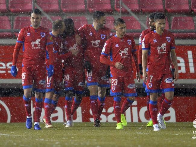 Los jugadores rojillos celebran un gol ante el Córdoba en Los Pajaritos. / laliga.es