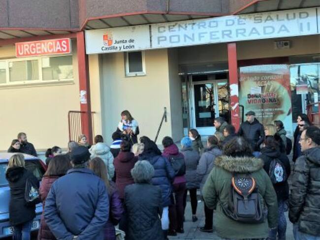 Megáfono en mano, Maite Fernández, se ha dirigido al medio centenar de vecinos que han respondido a su llamada a través de las redes sociales para demostrar la negativa de los ponferradinos a permitir que se pudiesen trasladar las urgencias pediátricas del centro de salud de Pico Tuerto al Hospital del Bierzo, una opción que dibujó el consejero de Sanidad, Antonio María Sáez, pero que ha sido ya descartada por la gerencia del área de Salud Bierzo y Laciana.