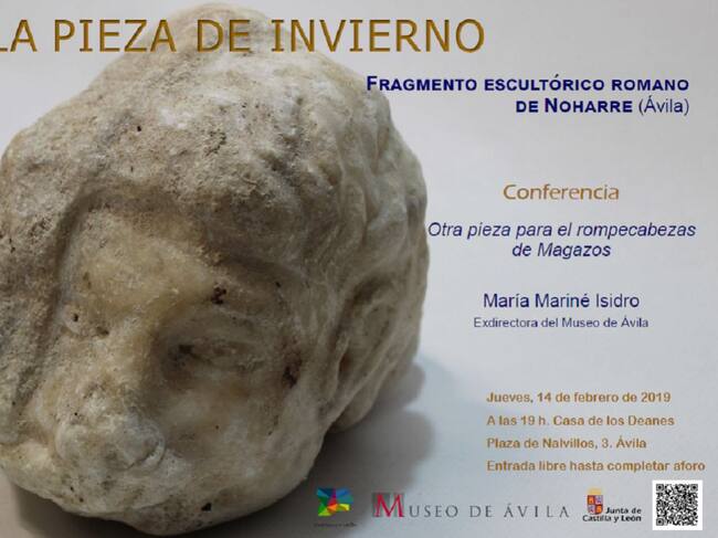 El Museo de Ávila ha elegido como "pieza de invierno" un fragmento escultórico en altorrelieve de origen romano. Es una pequeña cabeza que fue donada al Museo por Emma Alonso López, tras encontrarla durante unas obras en los terrenos de una casa familiar en Noharre, anejo de Nava de Arévalo.