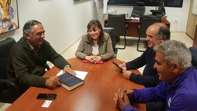 La teniente de alcaldesa de Empleo, Recursos Humanos y Deportes, Laura Álvarez, ha mantenido una reunión para hacer balance y seguir avanzando en la mejora de las instalaciones municipales de fútbol-base con el presidente de la Asociación Jerezana de Fútbol-Base presidida por Carlos Tenorio, que asistió acompañado de los directivos Juan García y Fernando Carrasco.