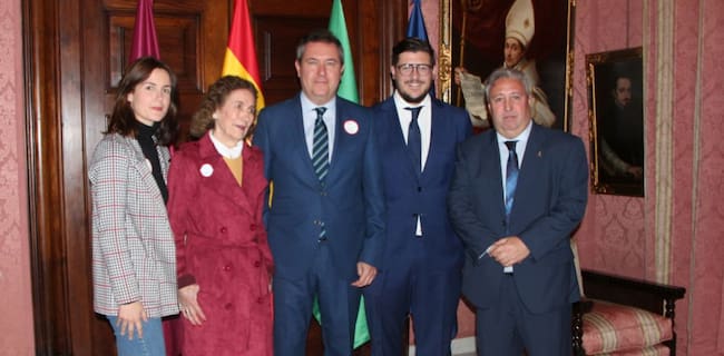 El alcalde de Sevilla, Juan Esapadas -en el centro de la imagen-, junto a algunos de los organizadores del concierto benéfico que el domingo se celebra en Fibes / @Ayto_Sevilla