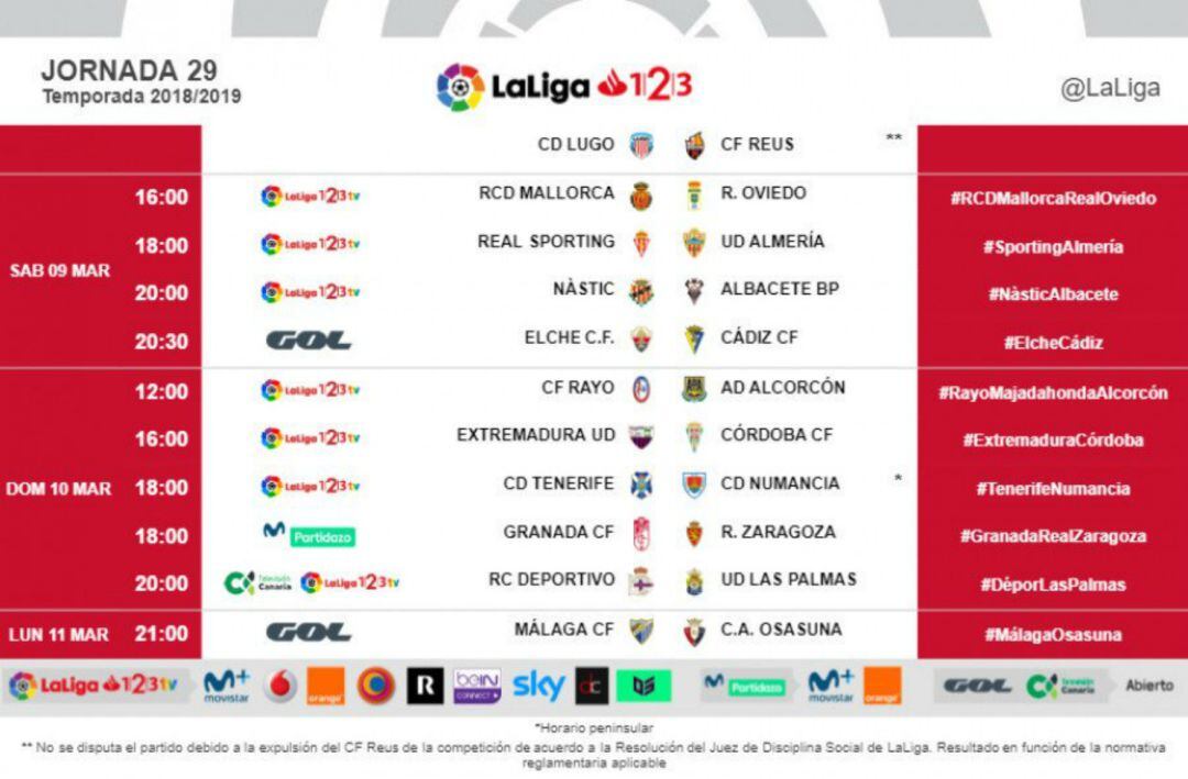El Málaga hasta que se enfrente al Osasuna, se medirá el domingo al Deportivo en La Rosaleda (18 horas), y al Córdoba, el sábado 2 de marzo (18 horas), en el Arcángel