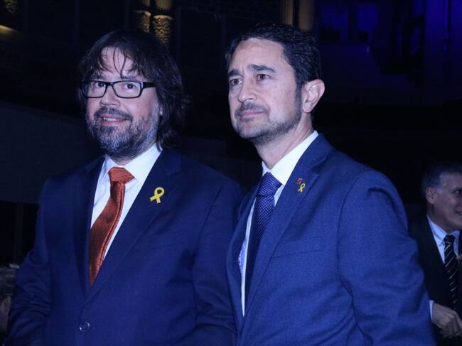 Damià Calvet, conseller de territori i sostenibilitat i Ricard Font, president dels Ferrocarrils de la Generalitat a l'acte de celebració dels 40 anys dels FGC / Sílvia Junyent Dalmau (ACN)