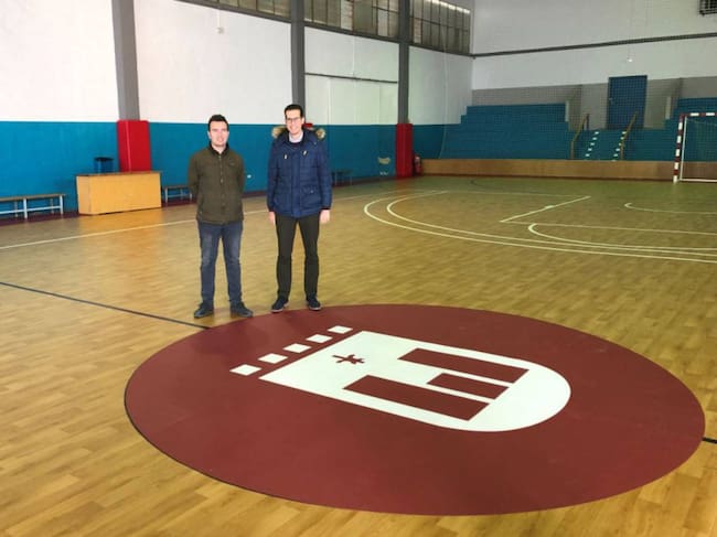 El alcalde de Elda, Rubén Alfaro (D) con el edil de Deportes, Fernando Gómez en el remozado pabellón / Cadena SER