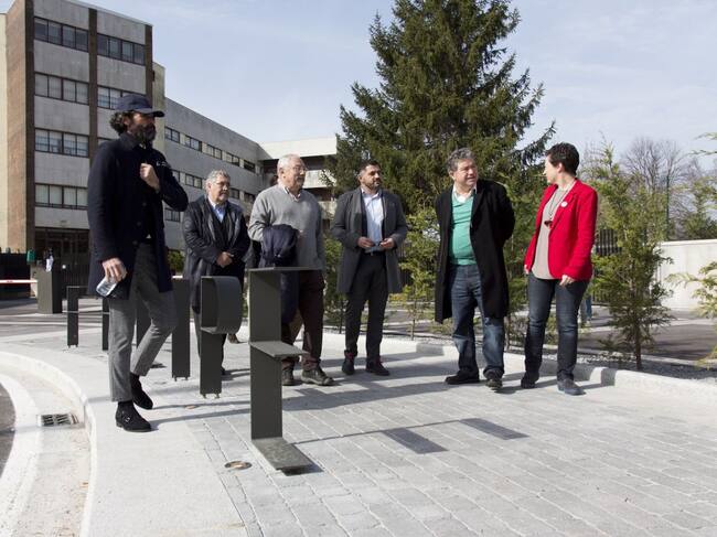 En la entrada hay elementos de calmado de tráfico para que la entrada y salida de los coches no sea tan brusca, también hay un sistema de vallado para la entrada y salida y una caseta moderna para los responsables de seguridad, además de la glorieta que tiene una particular farola en el centro.