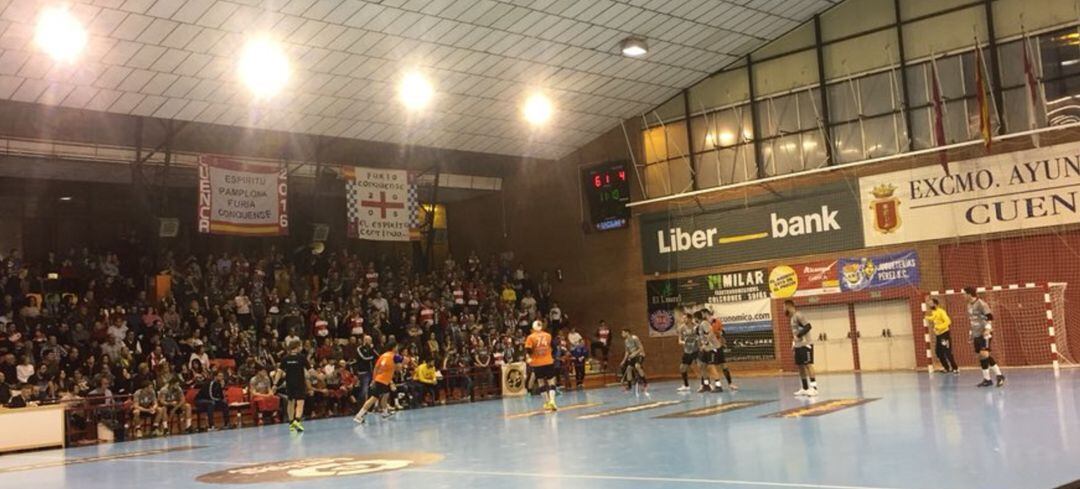 La primera mitad cumplió en parte el guión esperado, mucho choque y contacto en cada ataque, aunque quizá con más protagonismo en ataque que en defensa en los dos equipos y con mucha actividad para los extremos. Fueron los conquenses casi siempre por delante en el marcador, con un muy motivado y acertado Sergio López y con la buena dirección de Natan Suárez que se merendó en su duelo particular a Simonet mientras coincidieron sobre el campo. Además del buen hacer de Baronetto y los goles de Eskericic cuando le tocó saltar a pista. Dutra en su línea, casi sin aparecer, se fue con tres goles al descanso. Por los alicantinos, destacó Pabán (Paván, cuando estaba en Cuenca), algún detalle de Simonet, y los goles desde el extremo de Cabanas. Al descanso, ventaja dos arriba para los conquense, 15-13.