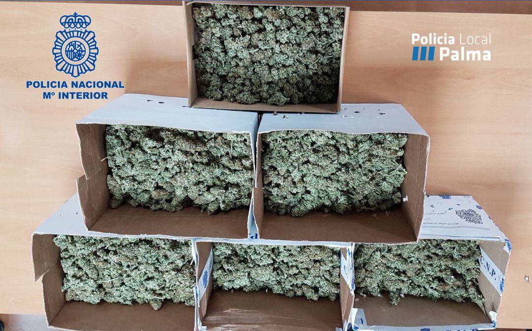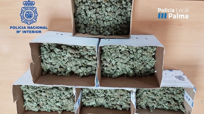 La Policía Nacional y la Local de Palma se han incautado de 6,5 kilos de cogollos de marihuana listos para vender