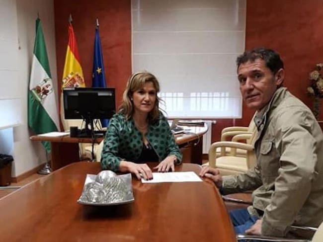 La delegada de Salud y Familias, Trinidad Rus, y el alcalde de Torres de Albanchez, Nicolás Grimaldos. / Ayuntamiento de Torres de Albanchez (Facebook)