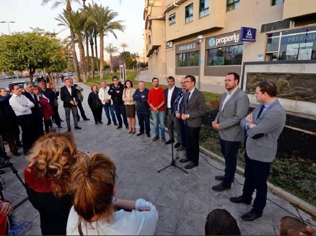 El alcalde de Murcia, José Ballesta, junto al concejal de Modernización de la Administración y Desarrollo Urbano, José Guillén, han inaugurado este lunes por la tarde la ampliación del parque escultórico Antonio Campillo; un acto que ha contado con la presencia del vicepresidente y secretario de la Fundación Antonio Campillo, Juan Pérez Ferra, y Antonio Pérez Ferra, respectivamente, entidad que ha donado las obras para su exposición en este céntrico espacio público de la ciudad de Murcia.