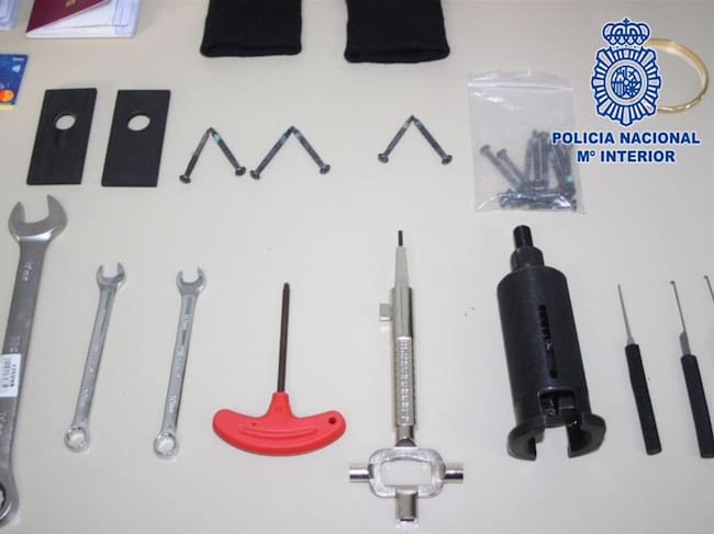 No solo se intervinieron las joyas, sino que los investigadores también hallaron numerosos útiles y herramientas para la apertura de las puertas (ganzúas, extractores de bombines, plásticos para los resbalones), así como guantes, gorros y marcadores.