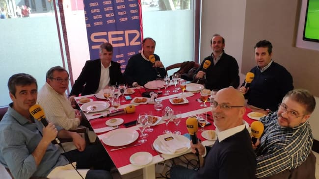 De izquierda a derecha, Manolo Aguilar, Rafael Sierra, Nacho Ansó, director del Hotel NH Collection; Santi Ortega, Ramón Román, Florencio Ordóñez, Fran Ronquillo e Ismael Medina / Cadena SER