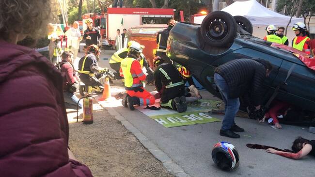 Un accidente múltiple de tráfico con tres turismos y una motocicleta implicada con diez personas heridas es la situación del simulacro vivida este miércoles por la mañana en el Paseo de las Bicicletas de la capital. 50 minutos en los que dos equipos de bomberos y otros dos de sanitarios han participado en este ejercicio en el que han tenido que excarcelar a personas de los vehículos y hasta simular el traslado a los centros sanitarios de los mismos.