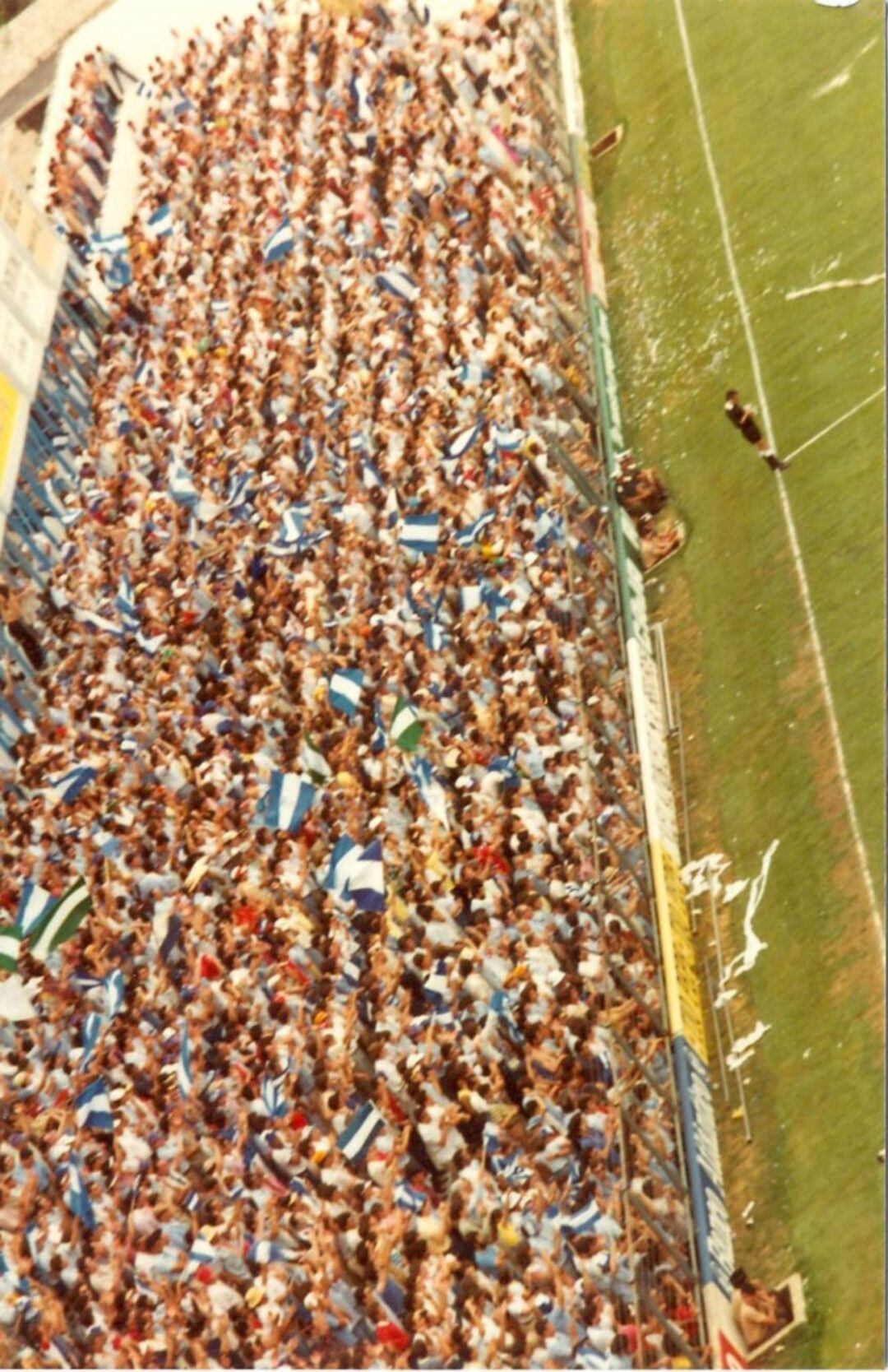 Por la vieja megafonía del estadio suenan los últimos anuncios: Seat Sodasa, la Caja de Ahorros, el nuevo Talbot Horizon, Ponche Soto y la Caja Rural, intercalada con algo de Mike Olfield y hasta de Pink Floyd.
