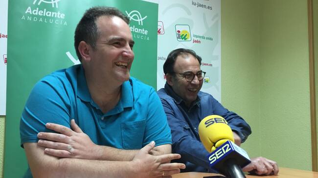 Joaquín López (IU) y Lucas Martínez (Podemos) durante la rueda de prensa para anunciar la confluencia en la capital jiennense. / Radio Jaén