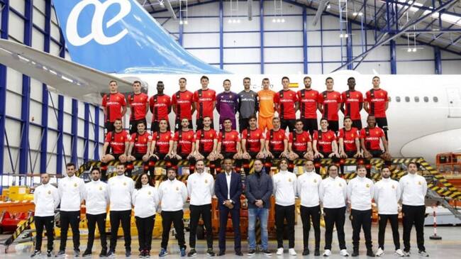 El RCD Mallorca ha hecho la foto oficial del equipo en el hangar de Air Europa