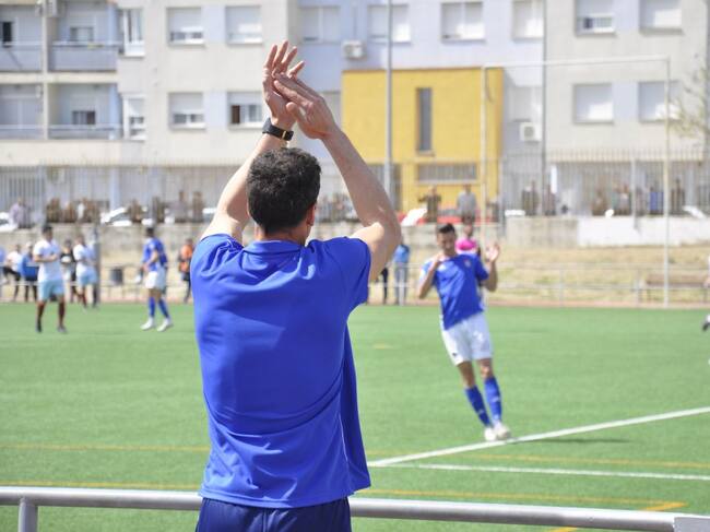 Antonio Calle aplaudiendo a sus futbolistas durante el partido ante el Arcos CF / Radio Jerez Cadena SER