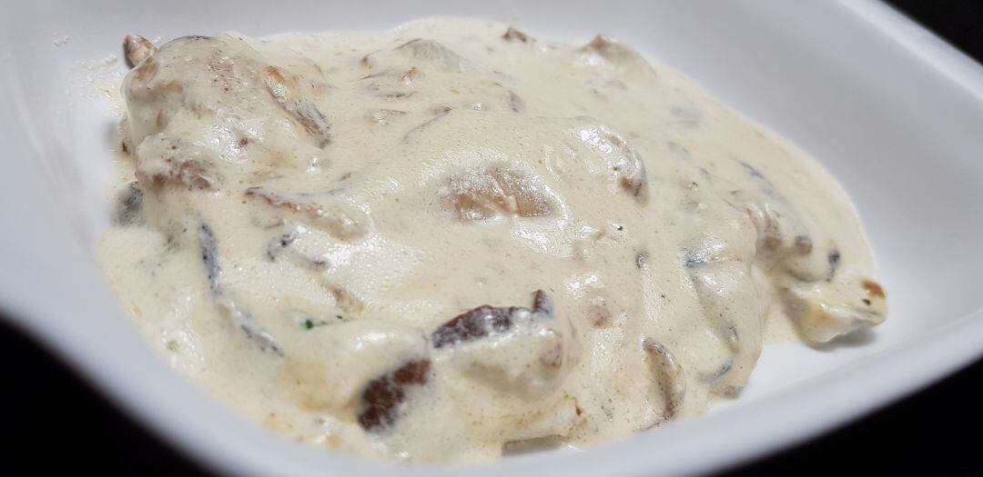 Pit de pollastre amb nata i xampinyons