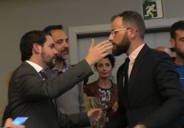 David Caballero ha anunciado que la próxima semana volverán a convocar a los medios para explicar cuál va a ser su futuro como concejales dentro de la corporación municipal. Tras las declaraciones, los afiliados presentes se han abrazado emocionados.