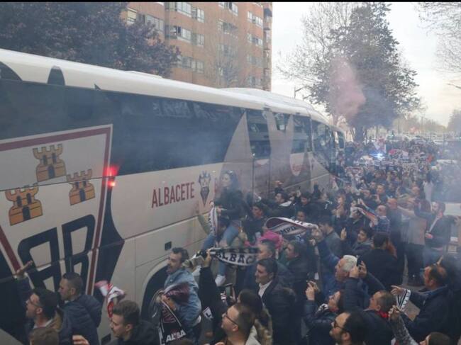 Recibimiento de la afición al Albacete a su llegada al Carlos Belmonte / Josema Moreno / Diario AS