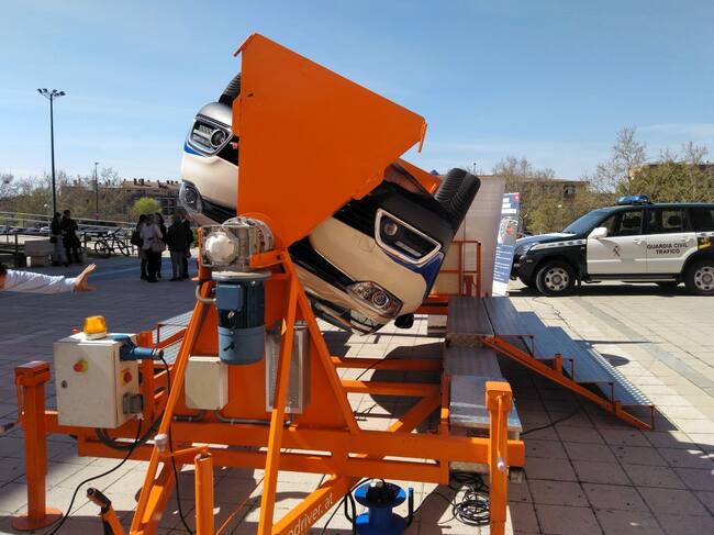 La Dirección General de Tráfico ha desplazado hasta el Campus de la Universidad de Valladolid, en la facultad de Educación y Trabajo Social, un simulacro de vuelco de un coche dentro de la X Campaña de Seguridad y Vialidad. Se trata de que los jóvenes conozcan los efectos de un accidente con vuelco y de prevenir la siniestralidad en las carreteras.