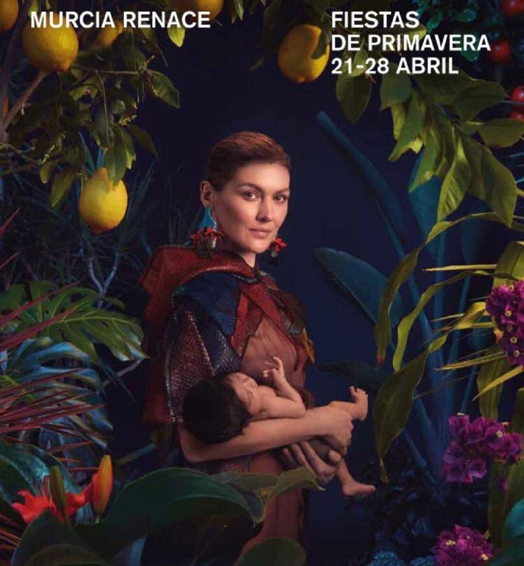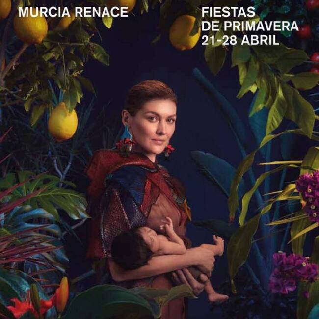 Para el cartel, según informaron fuentes municipales, se ha tomado como protagonista de la campaña a Flora, la diosa del eterno renacer de la primavera en la mitología romana, madre de las flores y los jardines, encarnada en la figura de la actriz murciana Marta Nieto que, rodeada de vegetación, sostiene a un bebé entre sus brazos, como símbolo de la vida y la fertilidad.